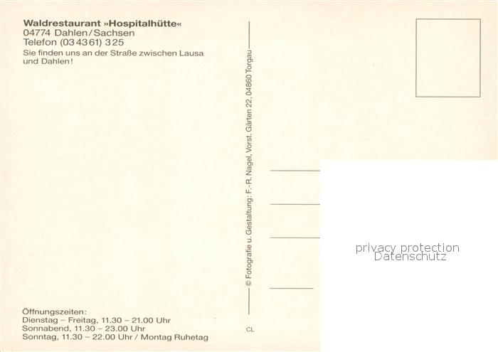 73658649 Dahlen Sachsen Waldrestaurant Hospitalhuette Terrasse Kinderspielplatz postalisch nicht gelaufen Erhaltung siehe scans [FriedD77] KatCode: 11110014389080
