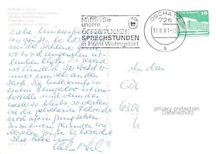 72631848 alte Postkarte Dahlener Heide Rathaus Hospitalhuette Waldbad Schmannewitz Dammuehlenteich postalisch gelaufen Erhaltung siehe scans [LiesaD40] KatCode: 11110014389080