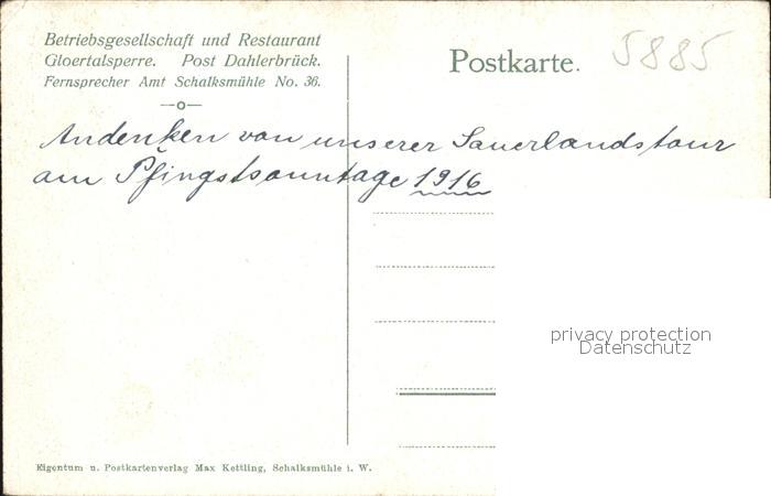 72430843 Dahlerbrueck Volmetal Gloertalsperre postalisch nicht gelaufen Erhaltung siehe scans KatCode: 11110005962056