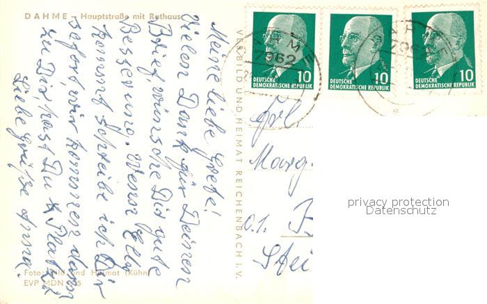 43351696 alte Postkarte Dahme Mark Rathaus Hauptstrasse postalisch gelaufen Erhaltung siehe scans [KathaD81] KatCode: 11110012072053