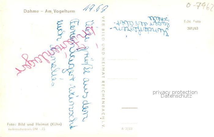 43351700 Dahme Mark Vogelturm postalisch nicht gelaufen Erhaltung siehe scans [KathaD81] KatCode: 11110012072053