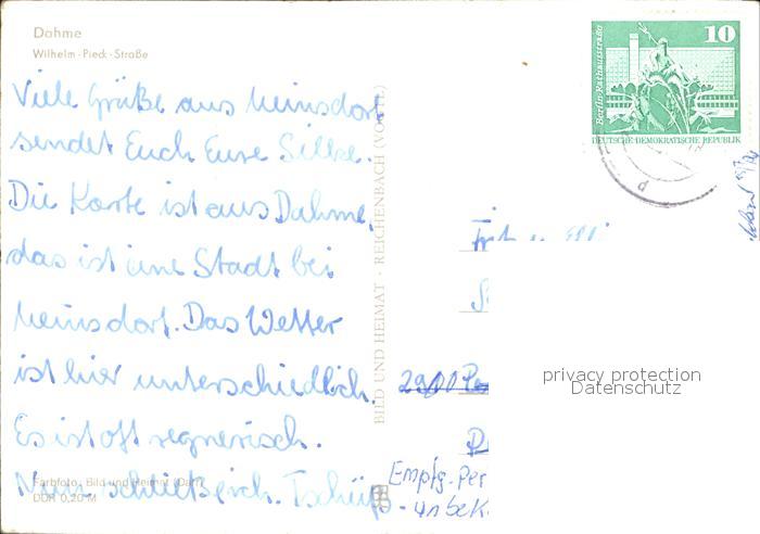 72076828 alte Postkarte Dahme Mark Wilhelm Pieck Strasse postalisch gelaufen KatCode: 11110012072053