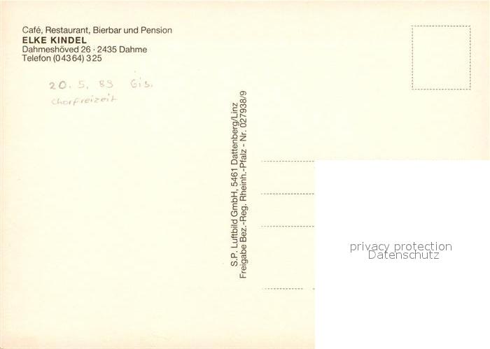 73268589 Dahme Ostseebad Cafe-Restaurant-Bierbar-Pension Elke Kindel Fliegeraufnahme postalisch nicht gelaufen Erhaltung siehe scans [PaolaD17] KatCode: 11110001055010