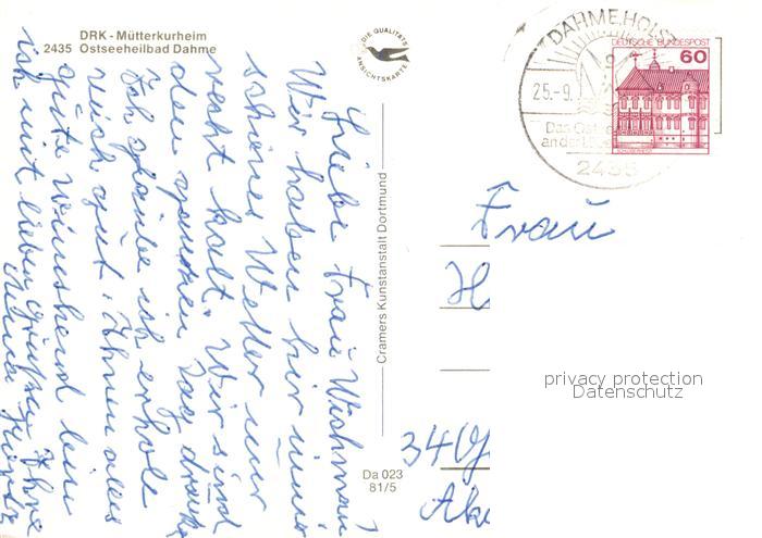 73026604 alte Postkarte Dahme Ostseebad DRK Muetterkurheim postalisch gelaufen Erhaltung siehe scans [KathaD81] KatCode: 11110001055010