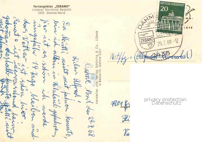 72777943 alte Postkarte Dahme Ostseebad Feriengebiet Zedano Luftbild postalisch gelaufen Erhaltung siehe scans [KathaD81] KatCode: 11110001055010