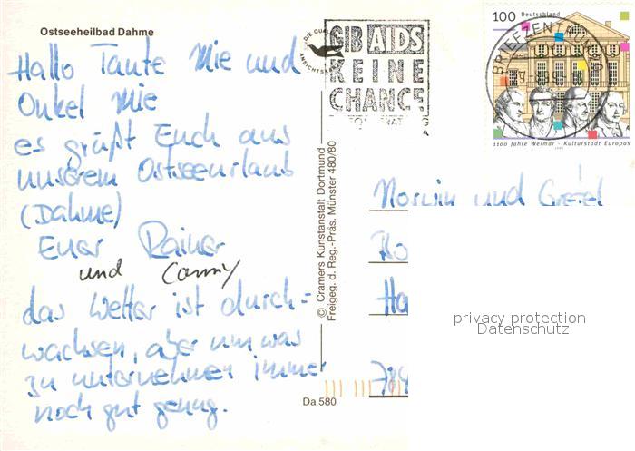 72720802 alte Postkarte Dahme Ostseebad Fliegeraufnahme Strand postalisch gelaufen Erhaltung siehe scans [LiesaD40] KatCode: 11110001055010