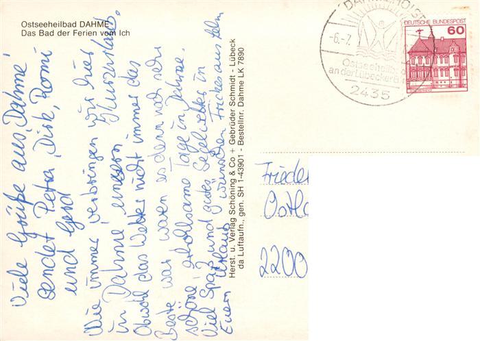 73904218 alte Postkarte Dahme Ostseebad Holstein Fliegeraufnahme postalisch gelaufen Erhaltung siehe scans [WerneD78] KatCode: 11110001055010