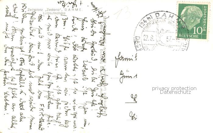 73759511 alte Postkarte Dahme Ostseebad Holstein Fliegeraufnahme Zeltplatz Zedano postalisch gelaufen Erhaltung siehe scans [LiesaD40] KatCode: 11110001055010