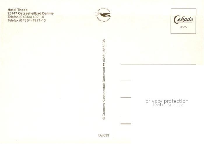 73789537 Dahme Ostseebad Holstein Hotel Thode postalisch nicht gelaufen Erhaltung siehe scans [WerneD78] KatCode: 11110001055010