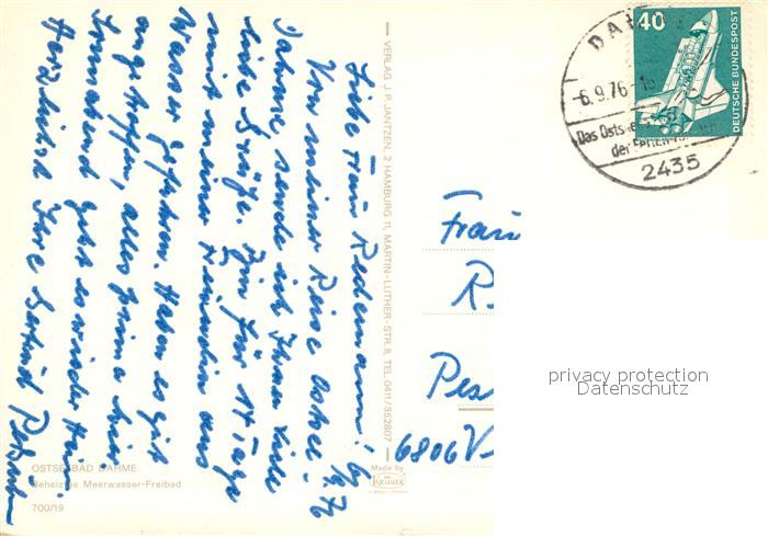 73636838 alte Postkarte Dahme Ostseebad Holstein Meerwasser Freibad postalisch gelaufen Erhaltung siehe scans [FriedD77] KatCode: 11110001055010