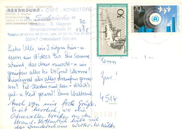 73924546 alte Postkarte Dahme Ostseebad Holstein Restaurant Cafe Seebruecke Konditorei Strandpromenade postalisch gelaufen Erhaltung siehe scans [WerneD78] KatCode: 11110001055010