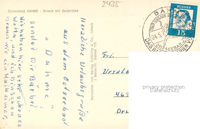 73694381 alte Postkarte Dahme Ostseebad Holstein Strand mit Seebruecke postalisch gelaufen Erhaltung siehe scans [WerneD78] KatCode: 11110001055010