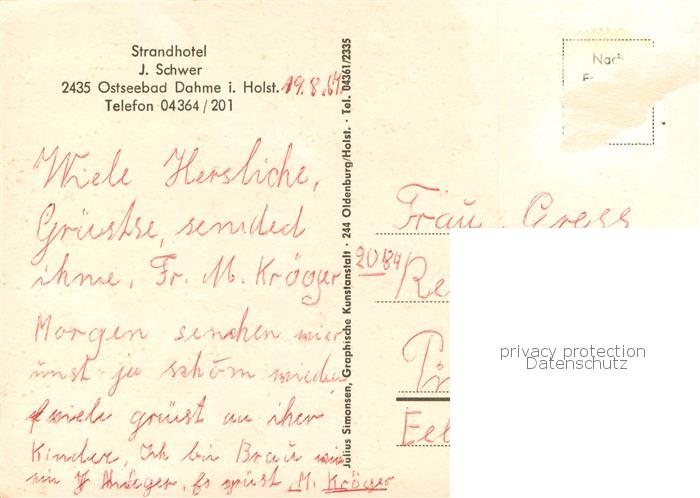 73781269 Dahme Ostseebad Holstein Strandhotel Schwer postalisch nicht gelaufen Erhaltung siehe scans [FriedD77] KatCode: 11110001055010
