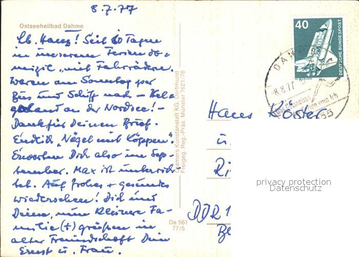 alte Postkarte Dahme Ostseebad Luftbild Strand postalisch gelaufen Erhaltung siehe scans