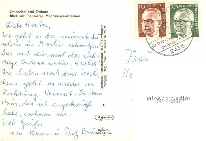 72901450 alte Postkarte Dahme Ostseebad Meerwasser-Freibad postalisch gelaufen Erhaltung siehe scans [NatalD47] KatCode: 11110001055010
