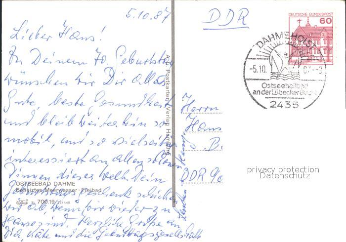 72248479 alte Postkarte Dahme Ostseebad Meerwasser Freibad postalisch gelaufen Erhaltung siehe scans KatCode: 11110001055010