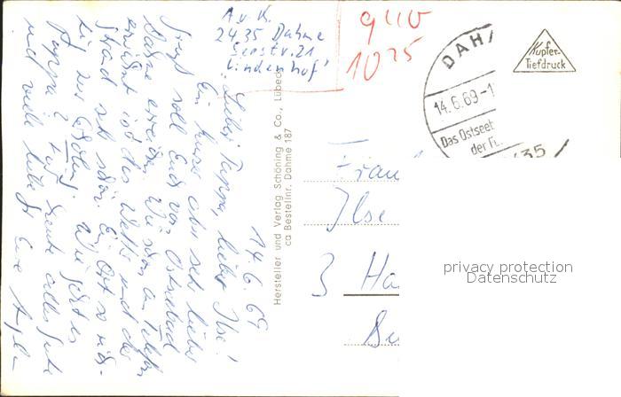 72311761 alte Postkarte Dahme Ostseebad Strand Promenade Seebruecke Sonnenaufgang Haus des Kurgastes Campingplatz postalisch gelaufen Erhaltung siehe scans KatCode: 11110001055010