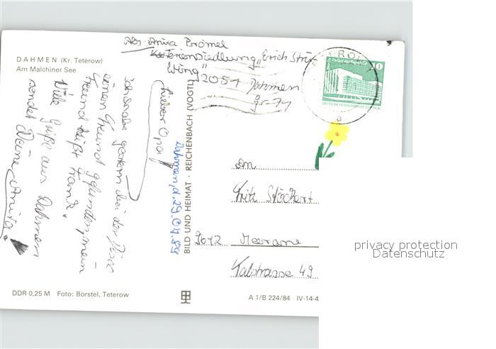 71900511 alte Postkarte Dahmen Malchiner See postalisch gelaufen Erhaltung siehe scans KatCode: 11110013053015