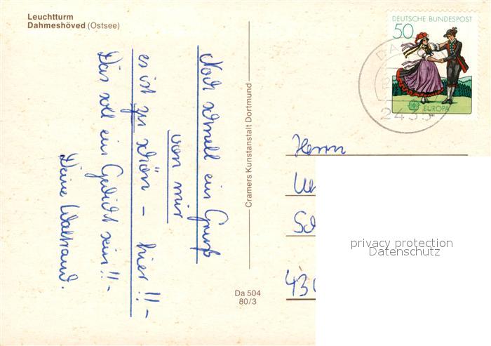 73540955 alte Postkarte Dahmeshoeved Holstein Fliegeraufnahme Leuchtturm postalisch gelaufen Erhaltung siehe scans [WerneD78] KatCode: 11110001055010