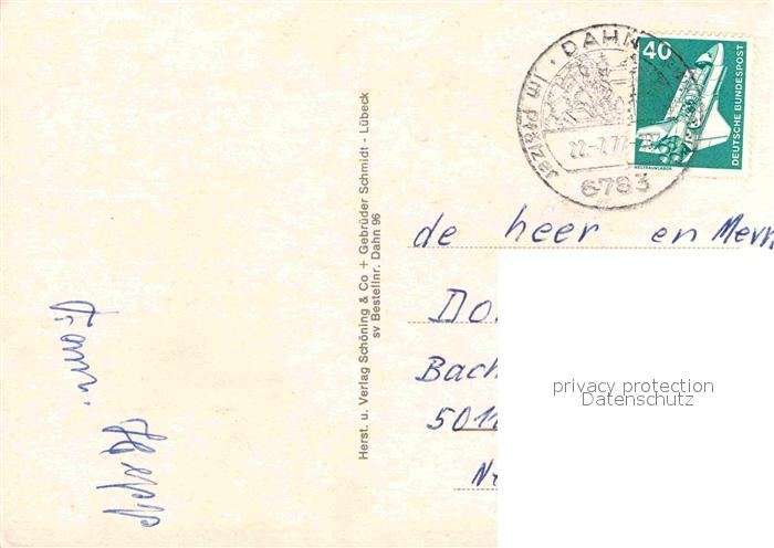 72869661 alte Postkarte Dahn Fliegeraufnahme Burgruine-Alt-Dahn Jungfernsprung Freibad Sanatorium Dr. Bick Markt postalisch gelaufen Erhaltung siehe scans [LiesaD40] KatCode: 11110007340004