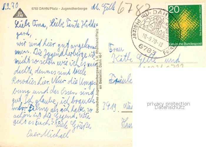 72907075 alte Postkarte Dahn Jugendherberge postalisch gelaufen Erhaltung siehe scans [FriedD77] KatCode: 11110007340004