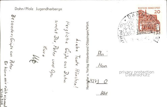 72405194 alte Postkarte Dahn Jugendherberge Zeltplatz Ruine postalisch gelaufen Erhaltung siehe scans KatCode: 11110007340004