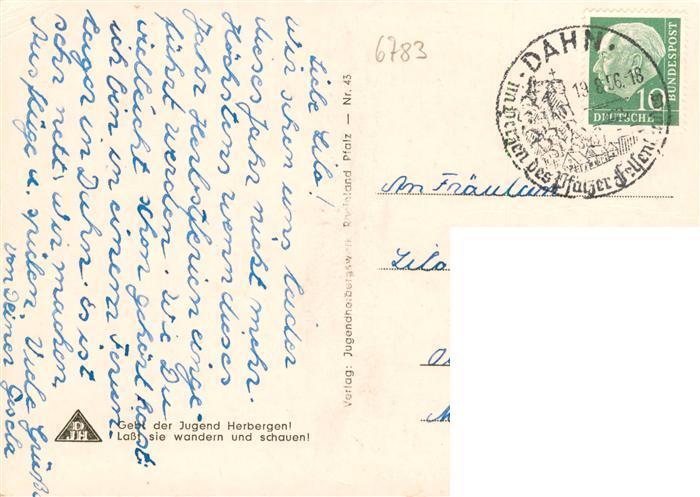 73874913 alte Postkarte Dahn Jugendherberge postalisch gelaufen Erhaltung siehe scans [WerneD78] KatCode: 11110007340004