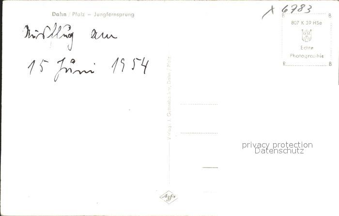 41792971 Dahn Jungfernsprung postalisch nicht gelaufen Erhaltung siehe scans KatCode: 11110007340004