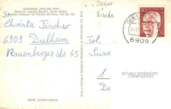 73126033 alte Postkarte Dahn Jungfernsprung Felsen postalisch gelaufen Erhaltung siehe scans [FriedD77] KatCode: 11110007340004