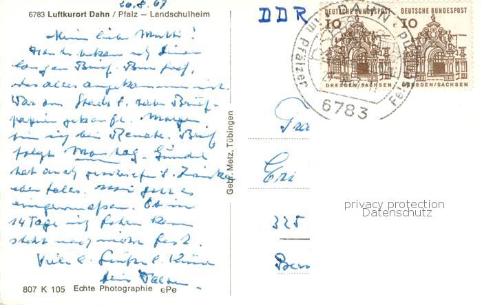 73763535 alte Postkarte Dahn Landschulheim postalisch gelaufen Erhaltung siehe scans [FriedD77] KatCode: 11110007340004