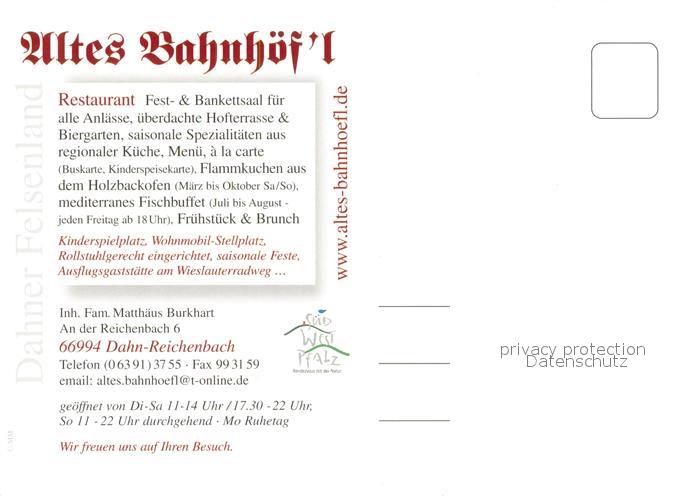 73653122 Dahn Restaurant Altes Bahnhoefl Gastraeume Festsaal postalisch nicht gelaufen Erhaltung siehe scans [WerneD78] KatCode: 11110007340004