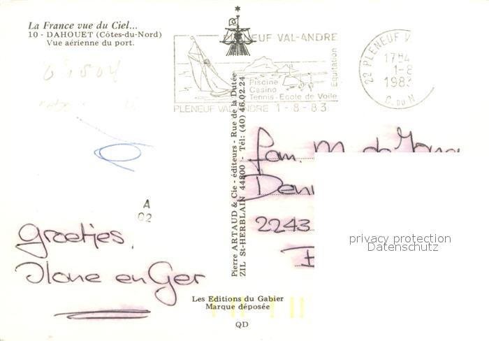 12998311 carte postale Dahouet Vue aerienne du port postalisch gelaufen Erhaltung siehe scans [WerneD78] KatCode: 11170022422186
