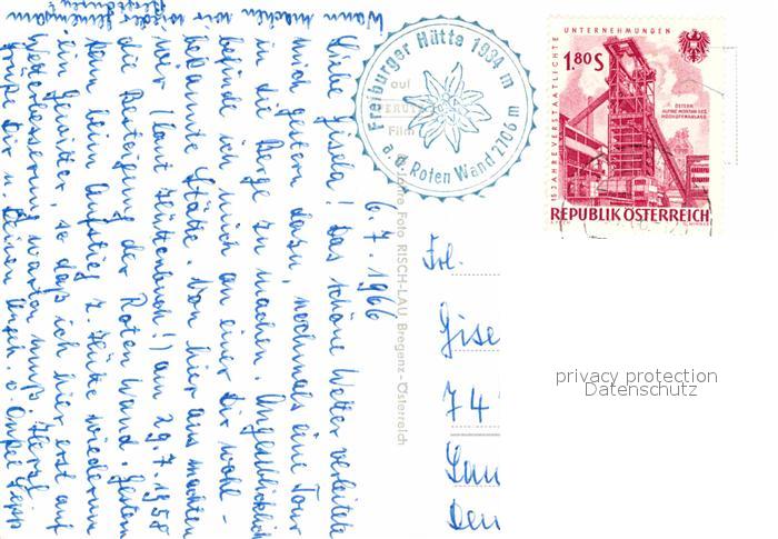 72819445 alte Postkarte Dalaas Freiburger Huette Roten Wand postalisch gelaufen Erhaltung siehe scans [KathaD81] KatCode: 11390341080108