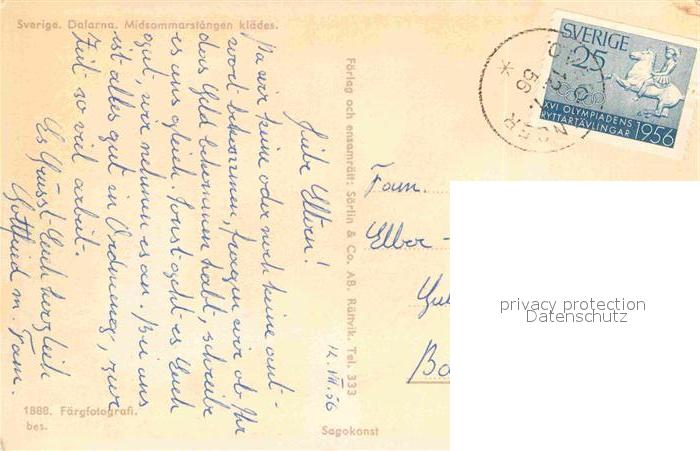 old postcard Dalarna Midsommarstangen klaedes postalisch gelaufen Erhaltung siehe scans [FriedD77]