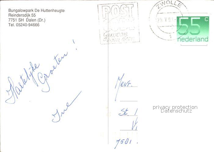 old postcard Dalen Drenthe Bungalowpark De Huttenheugte postalisch gelaufen Erhaltung siehe scans