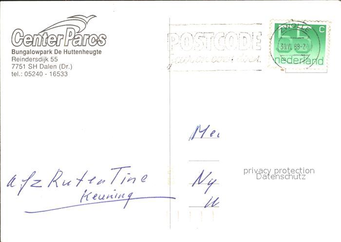 old postcard Dalen Drenthe Bungalowpark De Huttenheugte Restaurant Bowling Hallenbad postalisch gelaufen Erhaltung siehe scans