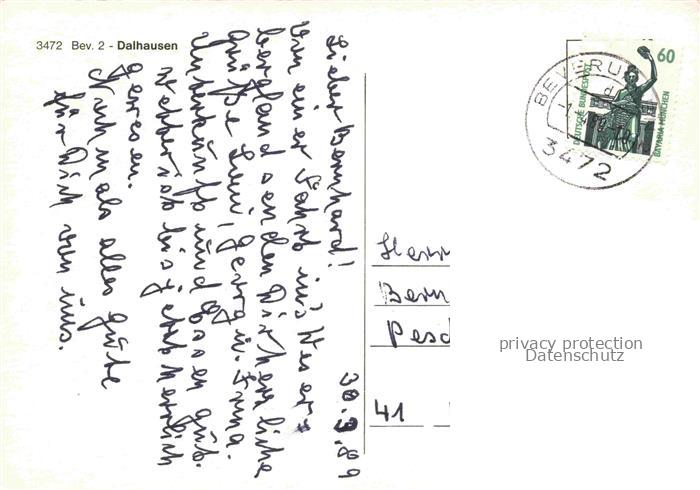 74042703 alte Postkarte Dalhausen Beverungen Hoexter NRW Panorama Ortsmotive Park postalisch gelaufen Erhaltung siehe scans [FriedD77] KatCode: 11110005762008