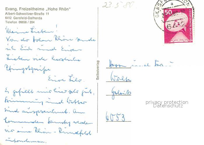 72917035 alte Postkarte Dalherda Evangelische Freizeitheime Hohe Rhoen postalisch gelaufen Erhaltung siehe scans [NatalD47] KatCode: 11110006631010