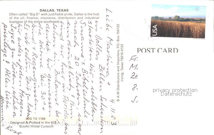 11686113 old postcard Dallas Texas Big D postalisch gelaufen Erhaltung siehe scans KatCode: 14140460000000