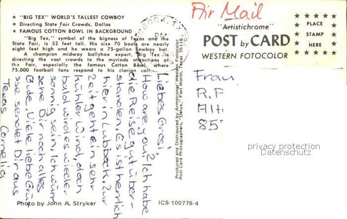 11686309 old postcard Dallas Texas Big Tex Wold tallest Cowboy Fair postalisch gelaufen KatCode: 14140460000000