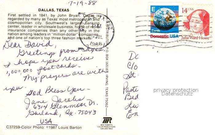 73059023 old postcard Dallas Texas by night postalisch gelaufen Erhaltung siehe scans [WerneD78] KatCode: 14140460000000