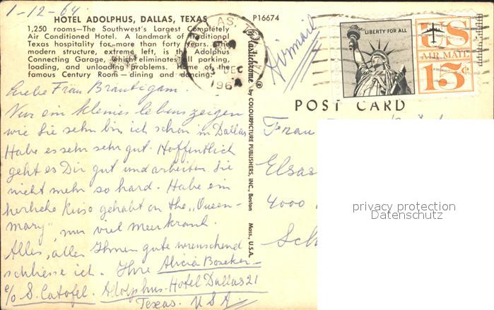 11690693 old postcard Dallas Texas Hotel Adolphus postalisch gelaufen Erhaltung siehe scans KatCode: 14140460000000