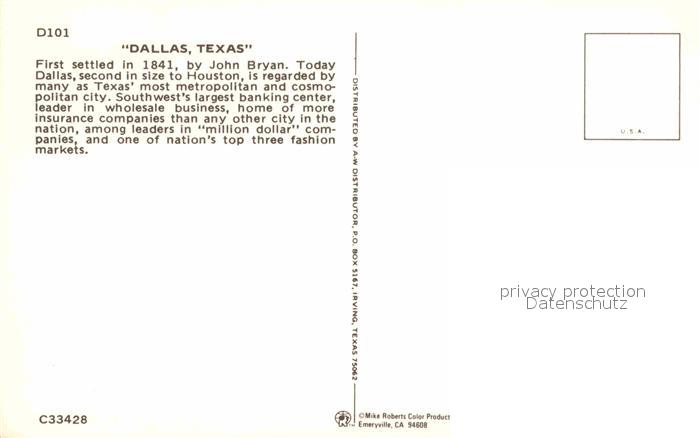 72705656 Dallas Texas Skyline postalisch nicht gelaufen Erhaltung siehe scans [AndreD76] KatCode: 14140460000000