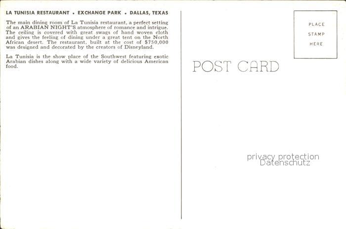 72179188 Dallas Texas Tunisia Restaurant postalisch nicht gelaufen Erhaltung siehe scans KatCode: 14140460000000