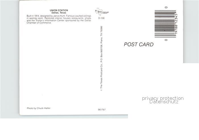 72482025 Dallas Texas Union Station postalisch nicht gelaufen Erhaltung siehe scans KatCode: 14140460000000
