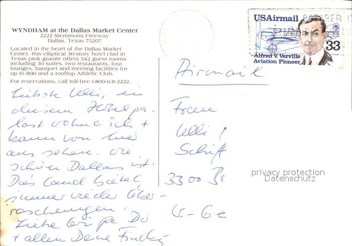 72177775 old postcard Dallas Texas Wyndham postalisch gelaufen Erhaltung siehe scans KatCode: 14140460000000