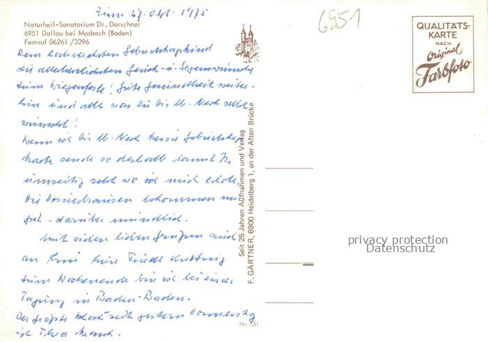 74048009 Dallau Naturheil-Sanatorium Dr. Dorschner postalisch nicht gelaufen Erhaltung siehe scans [FriedD77] KatCode: 11110008225117