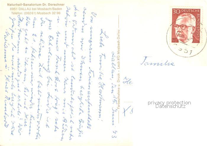 73667626 alte Postkarte Dallau Naturheil Sanatorium Dr Dorschner postalisch gelaufen Erhaltung siehe scans [WerneD78] KatCode: 11110008225117