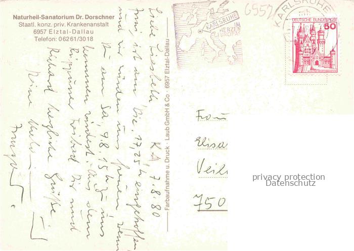 74048278 alte Postkarte Dallau Naturheil-Sanatorium Dr. Dorschner Waldpartie Hallenbad Gemuesegarten postalisch gelaufen Erhaltung siehe scans [FriedD77] KatCode: 11110008225117