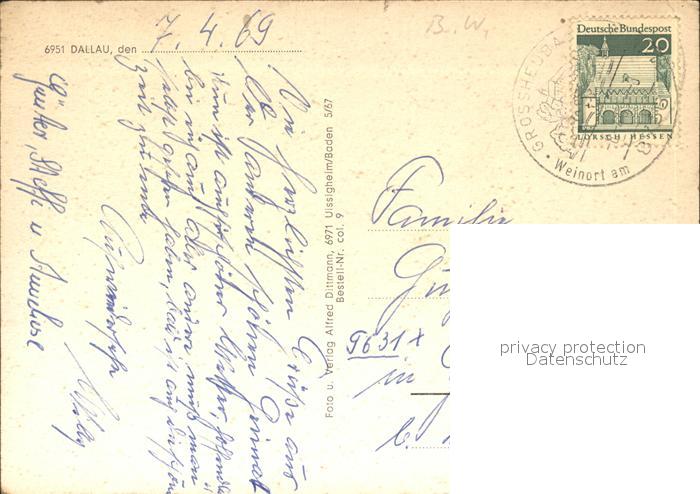 72117855 alte Postkarte Dallau postalisch gelaufen Erhaltung siehe scans KatCode: 11110008225117